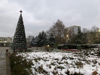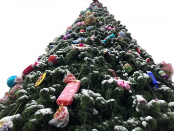 Нарядили и многострадальную елку. На ней появились самодельные игрушки, а выпавший снег придает ей еще более праздничный свет. Огни на елке пока не включают.