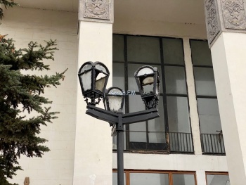 Также стоит отметить, что забор около театра им. Пушкина находится в аварийном состоянии. Из-за ветра один из листов может улететь. Кроме этого, на фонарях у входа в театр разбиты стекла, которое от ветра могут выпасть на проходящих мимо людей.