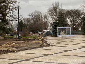 В Керчи 25 декабря на площади Ленина сильный ветер повалил забор и погнул верхушку на главной новогодней елке. Рабочие восстанавливают забор, за которым проходит реконструкция сквера, - передает Керчь.ФМ