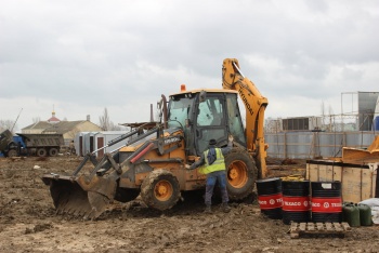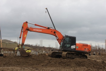 В одном из корпусов ведется заливка плиты перекрытия первого этажа. В основание уже залито около 2 тысяч кубометров бетона - это первоначальные трудоемкие работы.