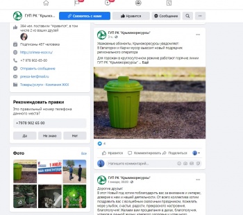 Также работает форма обратной связи на официальном сайте ГУП РК Крымэкоресурсы - крымэкоресурсы.рф (http://crimea-ecor.ru/).