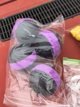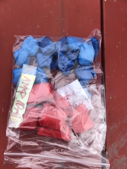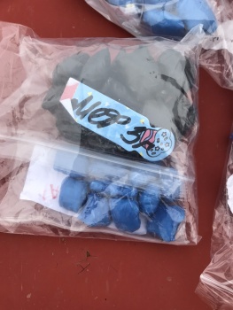 Экспертами-криминалистами изъято 4 шара черного цвета с сиреневыми ободками, в которых находилась марихуана и 125 свертков различной цветовой гаммы (красной, синей, желтой, розовой, черной). В каждом из свертков находился определенный вид наркотиков.