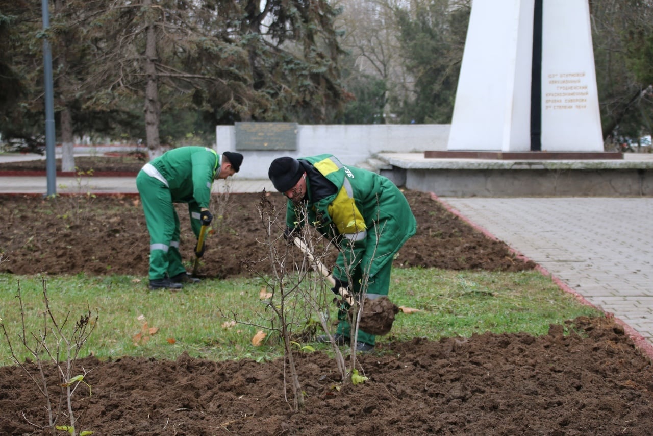 В понедельник, 11 января, сотрудники зеленхоза заканчивали перекопку клумб и очистку кустарников от листвы.