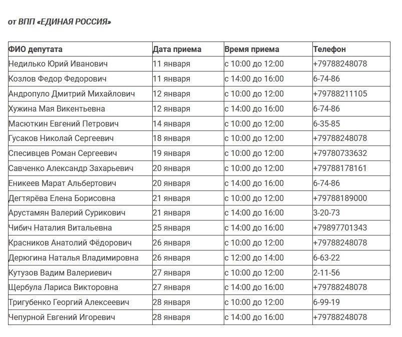 Пресс-служба горсовета Керчи сообщает график приема граждан в телефонном режиме депутатским корпусом Керченского городского совета 2 созыва в январе 2021 года, - передает Керчь.ФМ.