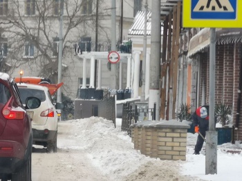 В Керчи 18 января центральные дороги плохо расчищены от снега. Стоит отметить, что и посыпаны специальной смесью дороги частично.