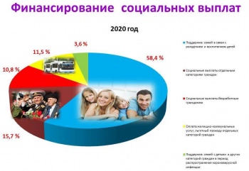 В том числе из 21, 1 млрд руб. более 12, 3 млрд руб. (58% расходов, в 2 раза превысило показатель 2019 года) выделено на социальную поддержку семей в связи с рождением и воспитанием детей, 3,3 млрд руб. (15, 7%, на 870, 6 млн руб. соответственно) - на осуществление социальных выплат отдельным категориям граждан, в том числе на выплату пособий малоимущим и малообеспеченным семьям, осуществление ежемесячной денежной выплаты ветеранам из числа ветеранов Труда, реабилитированных лиц, военнослужащих, на ежегодные выплаты ветеранам Великой Отечественной войны к 9 мая, выплату ежемесячной денежной помощи лицу, проживающему вместе с инвалидом I или II группы вследствие психического расстройства, по уходу за ним, 2,3 млрд руб. (10, 8%, в 6 раз соответственно) - на социальные выплаты безработным гражданам, более 2, 4 млрд руб. (11, 5%, на уровне 2019 года) - на оплату жилищно-коммунальных услуг отдельным категориям граждан, компенсацию отдельным категориям граждан оплаты взноса на капитальный ремонт общего имущества в многоквартирном доме, а также на компенсационные выплаты по льготному проезду отдельных категорий граждан на авто-, электро- и железнодорожном транспорте, 767, 5 млн руб. (3, 6%) - на дополнительную социальную поддержку семей с детьми и других категорий граждан в период распространения коронавирусной инфекции (получили 144, 4 тыс. чел.).