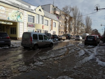 Тает снег: в Керчи затопило дорогу на Пролетарской