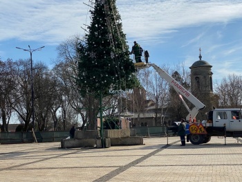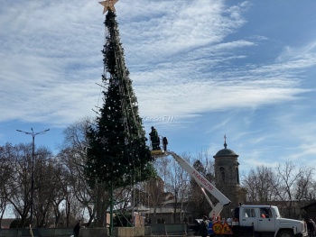В Керчи 25 января на площади Ленина начали разбирать новогоднюю елку. Рабочие снимают игрушки и гирлянду, - передает Керчь.ФМ.