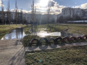 В Керчи на территории 23 школы произошел потоп. Чистой водой затоплен школьный стадион. Фотографии в редакцию Керчь.ФМ прислали родители учащихся.