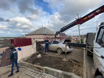 В Керчи 28 января около 13.00 на ул. Главной (район Партизанского) произошла авария. Автомобиль врезался в забор жилого дома и снес его. Остановил автомобиль гараж этого же дома, у которого из-за удара потрескались стены, - передает Керчь.ФМ.