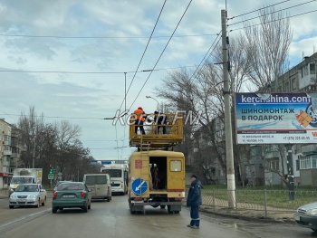 В Керчи 11 февраля на ул. Горького оборвалась линия троллейбусная. Как передает корреспондент  Керчь.ФМ, из-за этого частично приостановлено троллейбусное движение. На месте работает бригада.