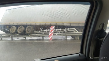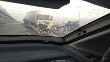 Утром 11 февраля на Крымском мосту произошла авария. Около 8 утра фура совершила наезд на отбойник в направлении Керчь - Тамань. Об этом  Керчь.ФМ сообщили постоянные читатели