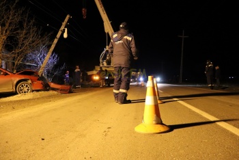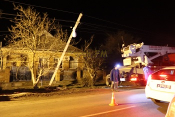 Водитель автомобиля «Шкода октавиа» не справился с управлением на улице Коммунаров, допустил наезд на электроопору. В результате половина Аджимушкая осталась без света, - передает Керчь.ФМ.