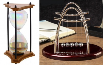 Он увлекается необычными вещицами и головоломками? - маятник Ньютона, нарды, интерьерные фигурки из металла.