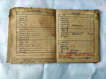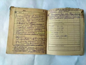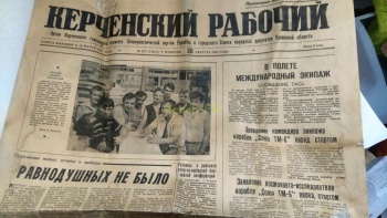 Рядом с дневником находилась газета Керченский рабочий», которая упала на 13 лет позже. На первой странице писали о бригаде мебельного цеха завода «Залив».