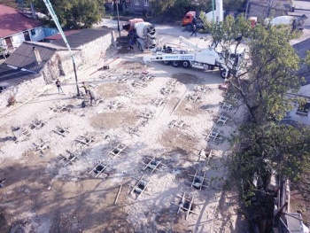 Объем бетона для свай составил порядка 30 кубических метров для 37 свай, объем бетона на ростверк мы залили порядка 20 кубических метров и на плиту еще 35 кубических метров.