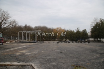 Напротив новой конструкции будущей сцены продолжаются сварочные работы.