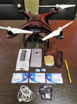 На дроне обнаружили прикрепленный сверток с двумя мобильными телефонами, гарнитурой к ним, зарядным устройством, запасным аккумулятором и пятью сим-картами.