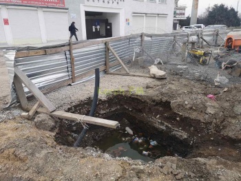 Журналисты Керчь.ФМ с этой же целью посетили две стройки по пути. Первой была общественная зона на стадионе им 50-Лет Октября. Там вчера, со слов рабочих, пытались вбить паспорт и случайно пробили электрокабель, обесточили роддом, жилые дома, школу. Кабель ведет к известному консолевскому дому по Курсантов, 20 и в обслуживании находится в дружественной структуре предприятии. Тем не менее, со стороны ПУДа, Лазурного, Мирошника паспорт объекта обнаружен не был. Возможно, место прокладки кабеля единственное возможное для установки конструкции.