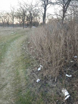 Приморский парк. Рядом с центральной аллеей относительно чисто, но заглянуть метров на десять дальше и в более отдалённых его частях, прилегающей городской территории и по побережью - всё в мусоре. Салфетки везде, резино-технические изделия под ногами на дорожках, тут же одноразовая посуда, бутылки и прочее. То чувство, что город заселён одичавшими зомби, которые оставляют после себя всё это. Для которых главное только поесть и развлечься. Плюс обгоревшие деревья, уже начавшиеся весенние пикники.