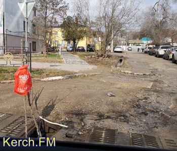 Открытую ливневку на ул. Свердлова, возле остановки Босфорский, обозначили ветками и пакетом, — передает Керчь.ФМ.