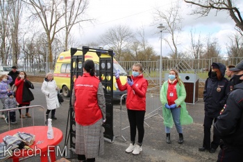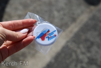 При входе всем меряли температуру. Также детям раздали брелоки со светоотражателем и ленты с триколором.
