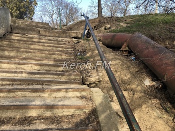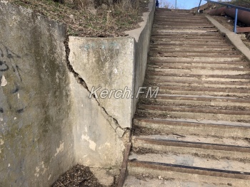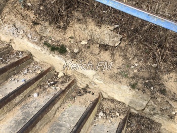 Пока керчанам обещают три новых лестницы к пляжу в Аршинцево, лестница в районе «Института» продолжает разрушаться, - передает Керчь.ФМ.