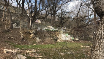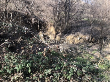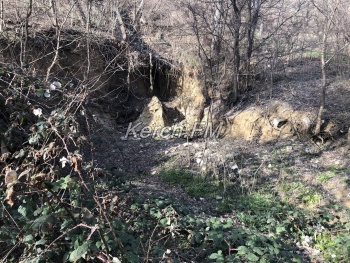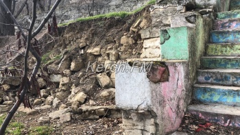 Так, на лестнице продолжают расти большие трещины. С одной стороны земля ползет, что естественно влияет на целостность самой лестницы. С другой стороны лестницы ситуация не лучше: здесь и вовсе оползни почти подобрались к подпорной стене гостиницы «Залива». Видно, как отсюда не только сползла земля, но и разрушена подпорная стена ниже, камни от которой разбросаны по обрыву.