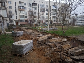 В Керчи во дворе дома по Индустриальному шоссе, 13 начали разбирать пешеходные дорожки. Плитку аккуратно складывают рядом, - передает Керчь.ФМ.