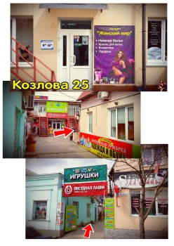Магазин «Женский Мир». Ул. Козлова, 25 (ориентир — бывшее местонахождение Московской ярмарки).