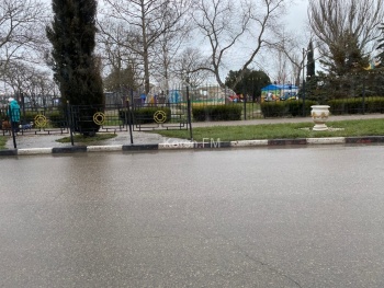Кроме этого, вчера, 26 марта, рабочий мыл бордюры на улице Кирова.