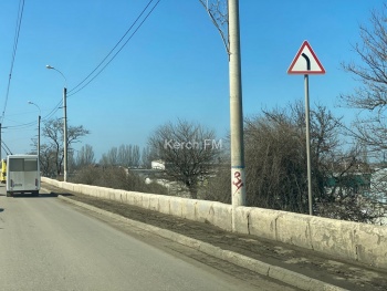В Керчи убирают тротуар на Горьковском мосту