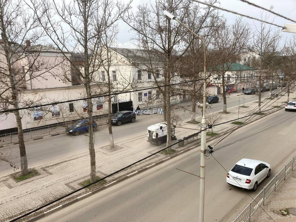В Керчи 29 марта на улице Пирогова убирают тротуар. С помощью спецтехники рабочий производит чистку плитки. В редакцию Керчь.ФМ сообщили очевидцы, передвигаться по улице пешеходам проблематично, так как стоит туман из пыли.