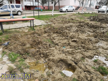 Во дворе шоссе Героев Сталинграда, 48 появляются новые «грязевые вулканы», территория двора вся разрыта, детская площадка тонет в грязи, — передает Керчь.ФМ.