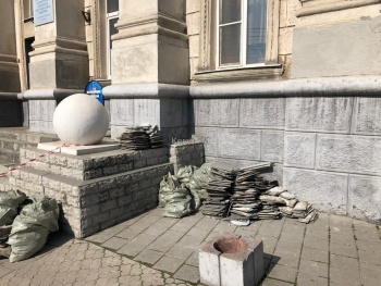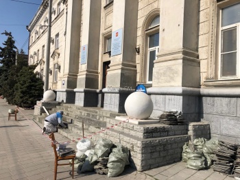 Так, вход в здание оградили сигнальной лентой. Сейчас здесь проходят работы реконструкции входной группы. По словам рабочих, ремонт также сделают и внутри, здесь обновят коридоры.