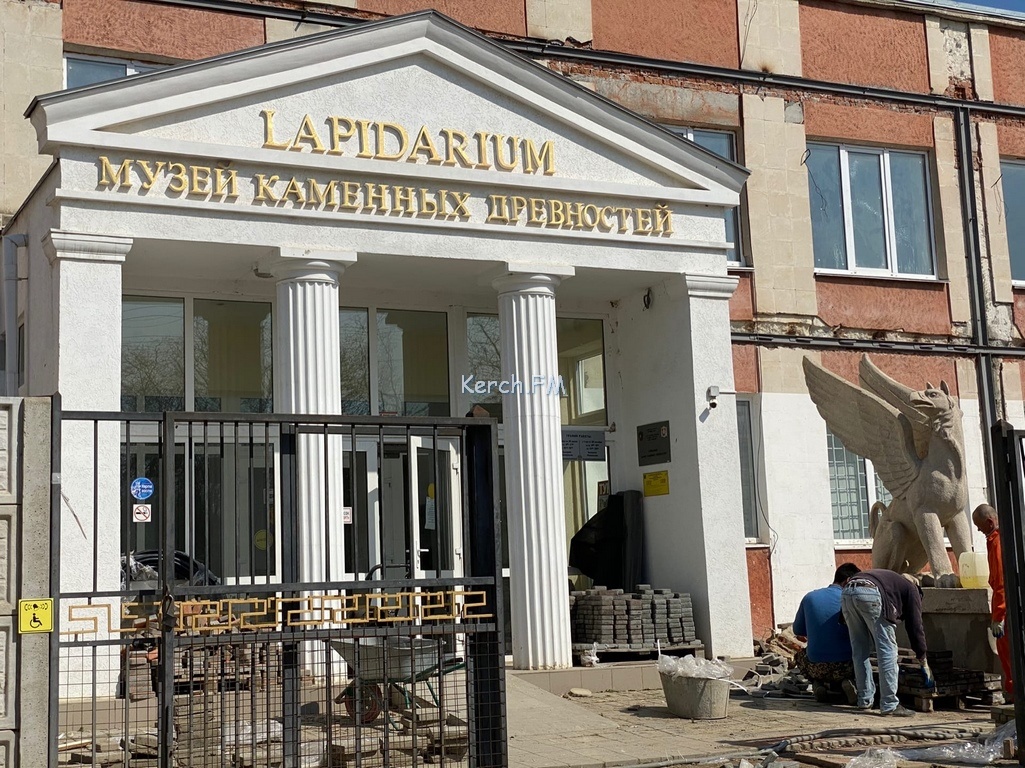 В Керчи занялись ремонтом здания лапидария. Рабочие, 2 апреля, у входа в заведение укладывают плитку. Уже виднеется красивый вид. При входе в здание разместились два грифона. Ранее, они стояли на Митридатской лестнице, - передает Керчь.ФМ.