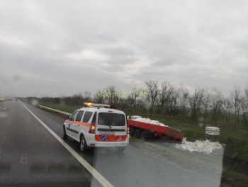 Сегодня, 3 апреля, на Тавриде под Горностаевкой произошло ДТП. В результате аварии фура с сыпучими материалами вылетела в кювет и легла на бок, - передает Керчь.ФМ.