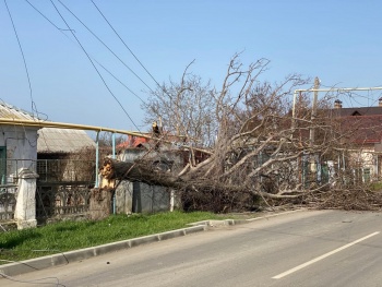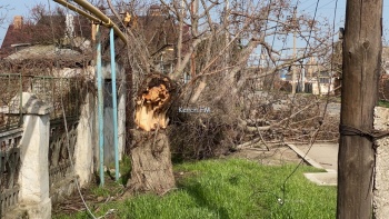 В Керчи 7 апреля на улице Толбухина упало дерево. В результате падения дерево оборвало провода. Как Керчь.ФМ рассказал хозяин дома, на чей забор упало дерево, он неоднократно просил спилить его.