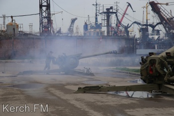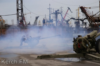 Здесь собрались военные, власти и приглашённые гости. Пришли и простые керчане, посмотреть на мощь пушек.
