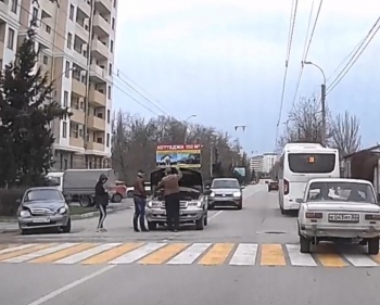 По информации очевидцев, люди в аварии не пострадали. Из-за небольшого потока авто, пробки на участке не было.