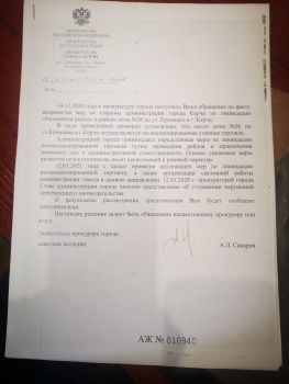 Я понимаю, что доход у пенсионеров небольшой и не отрицаю, что блошиный рынок это выход из положения для малоимущих. Только почему я, мои соседи должны от этого терпеть неудобства? Или мы живем в цивилизованном обществе, где важно мнение каждого и все придерживаются буквы закона, или нужно менять власть, раз она не способна принимать такие решения, которые устроят всех жителей Керчи», - рассказал представитель.