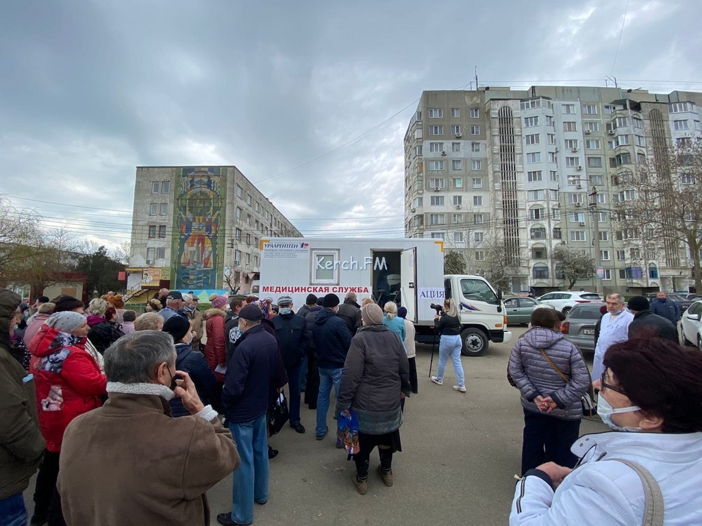 В Керчи 15 апреля на Ворошилова, на парковке за супермаркетом, проводят выездную вакцинацию. Всего врачам выдали 100 доз Спутник V. Привиться смогут только те, кто был ранее записан в поликлинике. В 9:45 часов, около машины собралось много людей, - передает Керчь.ФМ.