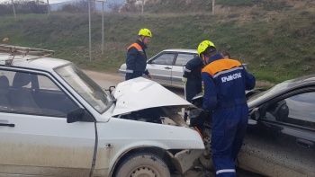 Сотрудники ГКУ РК «КРЫМ-СПАС» предприняли все необходимые противопожарные меры для предотвращения загорания в зоне ЧП. Работы по деблокации не проводилась. В результате ДТП пострадали 4 человека. Пострадавшие доставлены в приемный покой СМП.