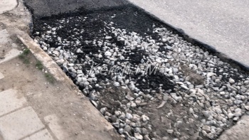 И вот, водители и местные жители обрадовались, начался ремонт. Но, оказалось рано радовались: яма заасфальтирована лишь наполовину. Видимо, асфальта не хватило.