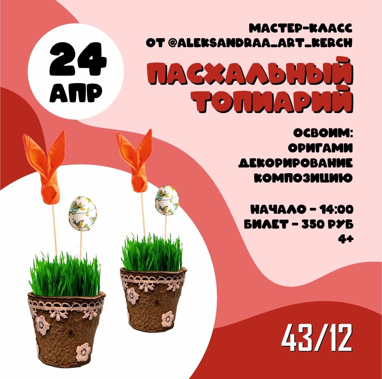 мастер-класс от по изготовлению пасхального топиария. Освоим с ребятами оригами, декорирование и композицию. Возрастная категория — 4+. Стоимость участия — 350₽.