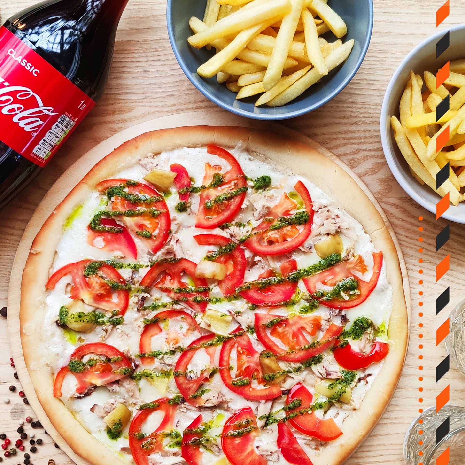- сытное комбо для Друзей: пицца на выбор Каприччио, Техас, 4 времени года, Панчикен exclusive + 2 порции хрустящего картофеля фри + 1л колы. Раздел Комбо на сайте.