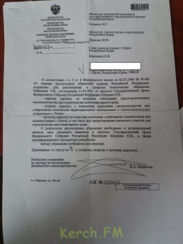С момента начала стройки в 7 подъезде уже пошли трещина. В квартиру, где от пола до потолка разнеслась паутина, приехали строители и наклеили контрольки, чтобы посмотреть насколько быстро расходится. А мы об этом предупреждали. Только пользы от наших обращений как с козла молока. Ответы пишут по одному и тому же шаблону, что начальник отдела в администрации, что куратор Керчи: все хорошо, прекрасная Маркиза. Про окончание этой песенки знают все», - рассказала Татьяна, представитель дома.