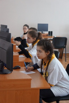На первом этапе участникам конкурса необходимо было пройти тестирование на знание правил дорожного движения. Ребята на время определяли очередность проезда перекрестка, правила поведения велосипедиста на дороге, знание групп дорожных знаков, также было и несколько вопросов на внимательность.