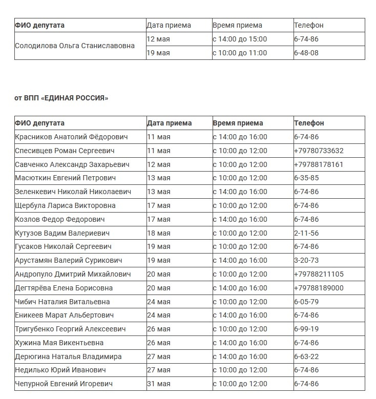 Пресс-служба горсовета Керчи сообщает график приема граждан в телефонном режиме депутатским корпусом Керченского городского совета 2 созыва в мае 2021 года, - передает Керчь.ФМ.