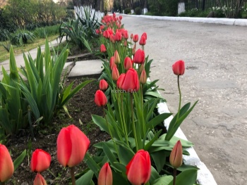 В Керчи зацвела большая клумба тюльпанов у ДК «Корабел». Чтобы сфотографироваться с красной поляной красивых цветов керчане даже ждут своей очереди, - передает Керчь.ФМ.